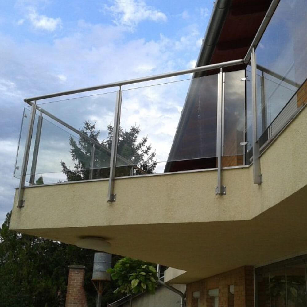 There are several options to choose from when it comes to glass barriers. They can be mounted on posts, fastened in the profile or attached with point fastening. Glass barriers can be made of transparent glass, clay,… Our new, easy to install, most economical aluminum post and transom glass barrier is now available It is perfect for outdoor use and according to test results, it is stronger than stainless steel balusters. It is extremely easy and quick to assemble as there is no need to drill and attach glass clamps to the balusters - this saves a lot of time and eliminates the need for clamps. The advantage is that there are no air gaps between the glass and the post and a continuous surface is created. The new column system is available with 5.5 mm thick safety glass. There is a wide choice of glasses: clear, frosted, acid, parsol or even with the printed surface that can be seen in the picture. Available with or without handrail. In the latter case, you get a clean, absolutely minimalist style. You can also request a quote including design and installation.