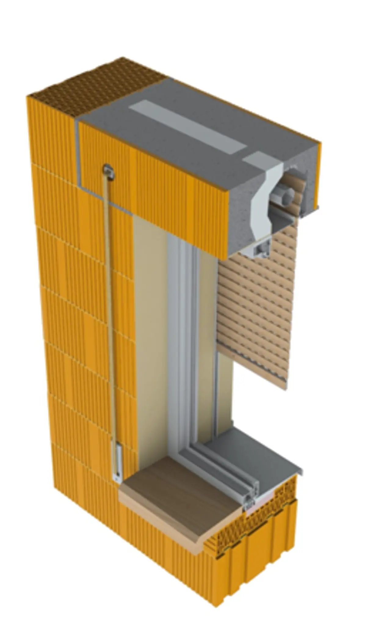 When closed, aluminium lamellas filled with PUR foam form a self-contained area that completely shades the interior and creates a difficult to pass obstacle in the case of intruders. The guiding bars can be built into the reveal fixed on the window frame. Blinds into the Heluz lintel are supplied in a range of colours. Lamellas can be harmonized with the colour of the frame, including the wood imitation version or a shade matching the colour of the façade. The exterior shading technology creates an optimal environment in terms of lighting and thermal conditions and is a key part of the construction in terms of energy savings. Exterior shading also fulfils an aesthetic function, particularly in modern constructions, where they can often be a dominant architectonic feature.